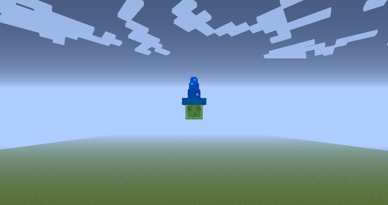 Picture of a player morphed as a slime wearing a magic hat from iChun's hat mod.